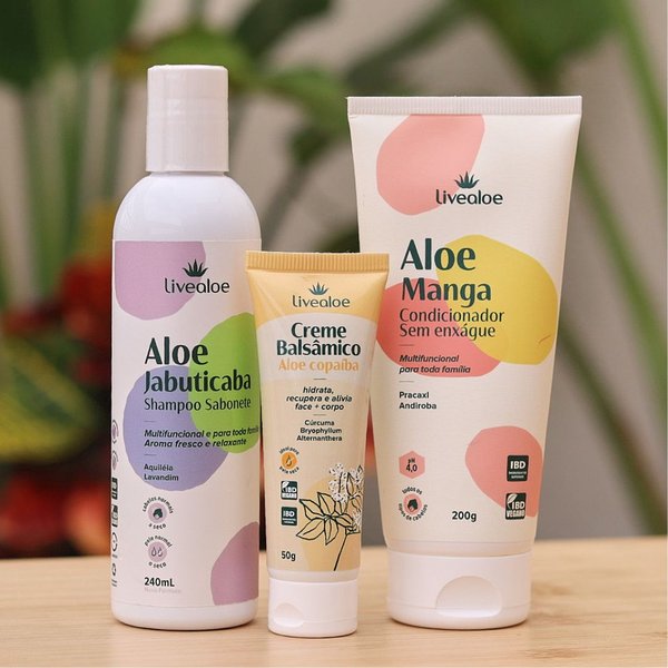 A linha de Higiene Capilar Aloe Jabuticaba e Manga e o Creme Balsâmico Aloe Copaíba LiveAloe 50g foram desenvolvidos com ingredientes 100% naturais e seguros para toda a família, peles delicadas, peles alérgicas e cuidados completos desde o banho até os cuidados com a pele.
