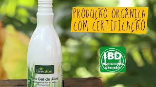 A Aloe vera é certificada como orgânica, seu cultivo é no mesmo local onde é processada a fim de garantir gel fresco e enriquecido.